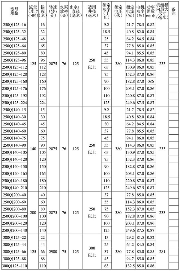 QJ(R) 型號特征:井用潛水電泵(熱水)